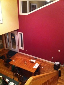 We have an 18 foot ceiling in our kitchen, with sky lights. And a red wall. That should be about perfect.