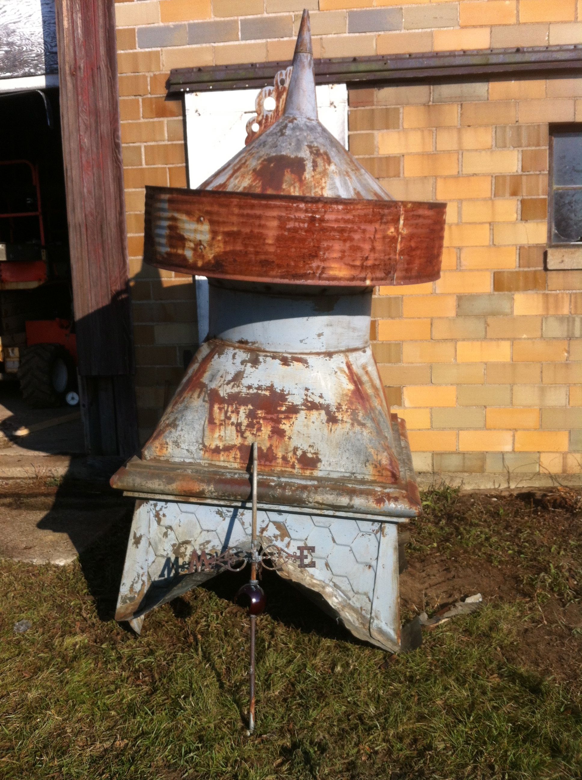 Nor did I neglect the galvanized sheet metal cupola on the roof. It’s an early 20th century ventilation system to carry methane out of the barn—and hold a weather vane that I have not yet replaced.