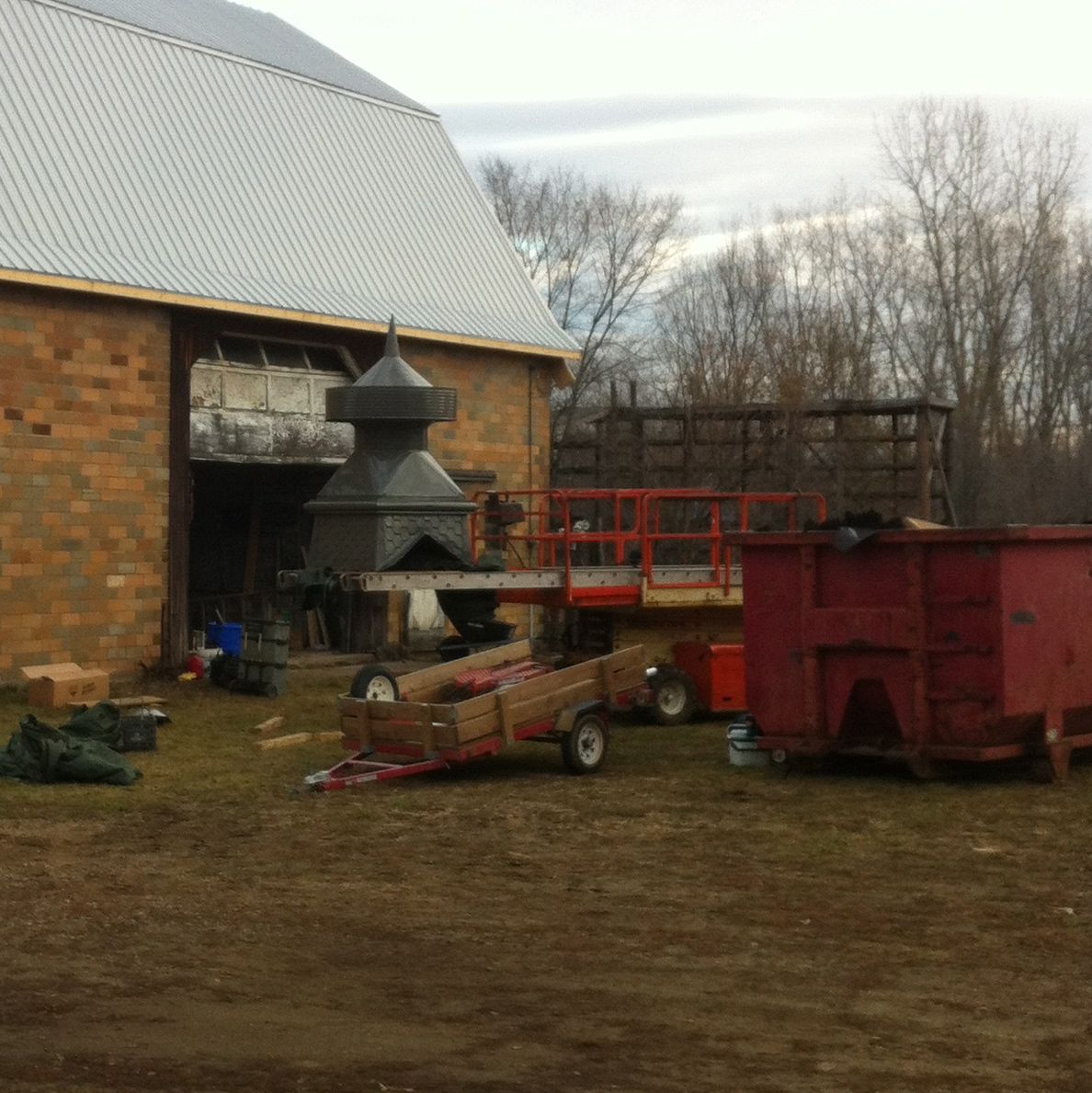 I didn’t need a cupola. I’m not sure I even need a barn. We are just simple cat-ranchers after all. But it had been there from the late 1930’s and it seems like it ought to stay there a while longer. So Milo and his men pulled it down and I had it sand blasted at North Adams Collision and repainted by Cars Unlimited.