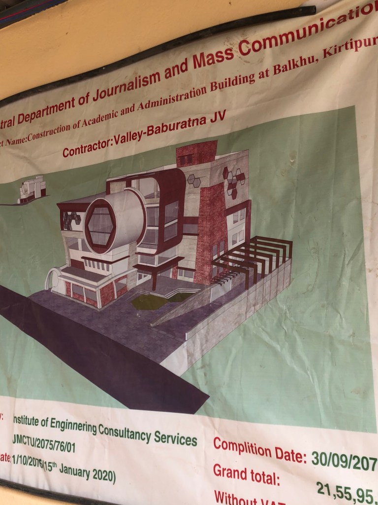 The building, designed to look like a camera, represents considerable vision and effort. I can’t imagine, given the nature of bureaucracy here, how the department head, Chiranjivi Khanal, ever arranged the property and funding. His faculty gives his vision and persistence full credit, and he (characteristically) credits his faculty. This includes, lacking a better word, my “handler” DevRaj Aryal, a working journalist and faculty member. And friend.